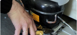 - Устройство не отключается. Компрессор должен регулярно выключаться. Вследствие большой нагрузки он быстро изнашивается и выходит из строя. Если холодильник не выключается, сначала нужно проверить, плотно ли закрыта дверца, осмотреть уплотнитель на наличие повреждений, проверить корректность выставленных режимов. Если установлена суперзаморозка, то до поворота регулятора компрессор будет работать без перерыва. Среди поломок, из-за которых не отключается мотор, можно выделить сбои в работе датчика температуры, выход из строя модуля управления, испарителя, утечку фреона. Проблема решается путем замены запчастей либо заправкой фреона с предварительным устранением места утечки.
