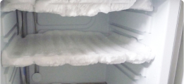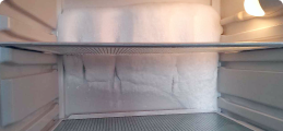 - Образуется наледь. Это указывает на неисправность системы оттаивания. Могли сломаться предохранитель, таймер, ТЭН. Также могла засориться дренажная система. Если в желобе скопился мусор, вода будет застаиваться в нижней части камеры и замерзать.